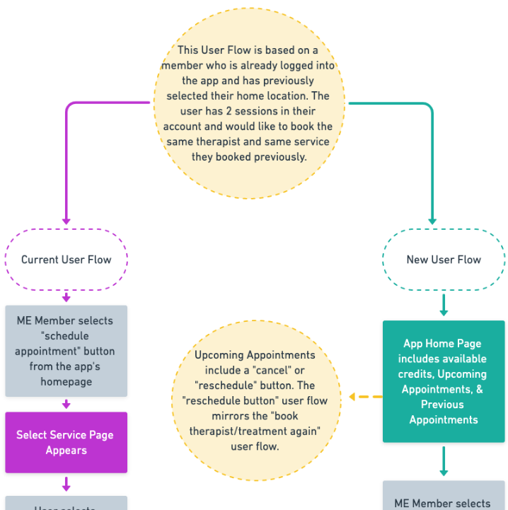 During the interview process, I spoke with a member from a competitor and reviewed the top 5 massage franchises' digital scheduling tool and created a feature benchmark. ME is the number 1 massage franchise in the country and their digital tools should reflect their success. As you can see, ME had some catching up to do: